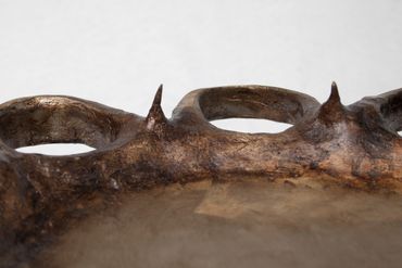 This work is about dealing with trauma in relation to today’s society, while navigating personal relationships, and letting go of past pain. Duality is expressed through simplified forms, allowing the viewer to confuse a flower for brass knuckles, communicating the dual identity of one living with memories of trauma.